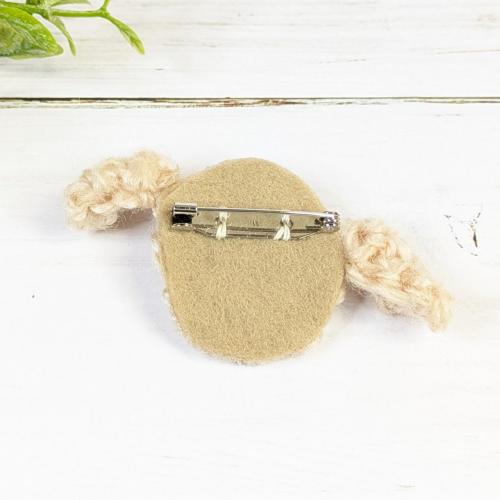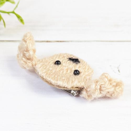 毛糸の素材感とユニークなアニマルモチーフが融合した、楽しいブローチ。