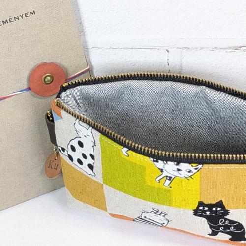 【Atelier Ku】浅型ファスナーポーチ(ネコ)
