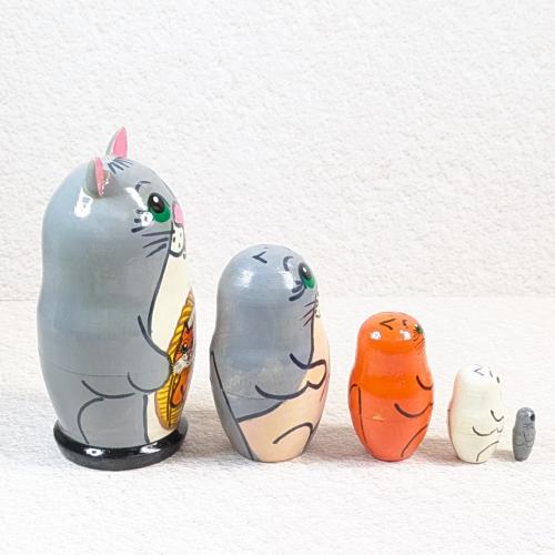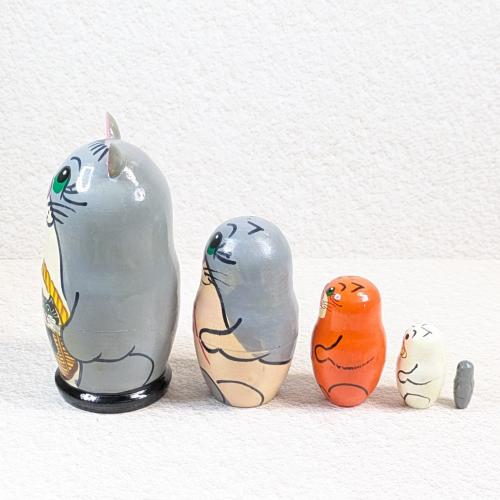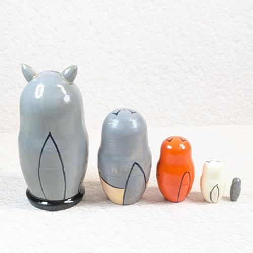 【ロシア】動物モチーフ耳つきマトリョーシカ・5個型(ネコ/グレー)