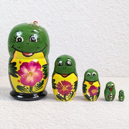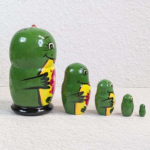【ロシア】マトリョーシカ・5個型(カエル/赤花)