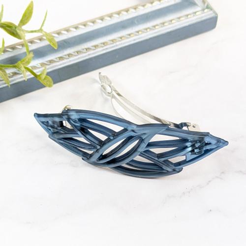 【FRANCE】リーフ透かしバレッタ(ネイビー)