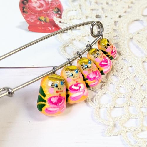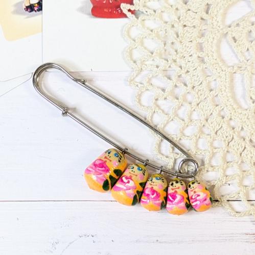 【ロシア】マトリョーシカブローチピン(オレンジ)