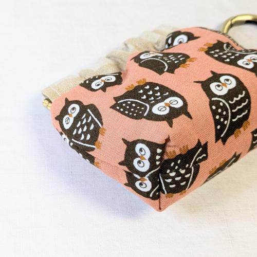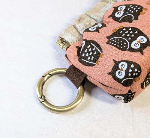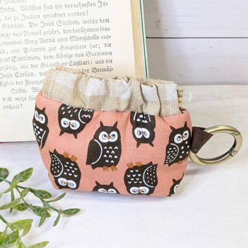 【Angela】さん / カラビナ付きミニバネ口ポーチ (フクロウ・ピンク)