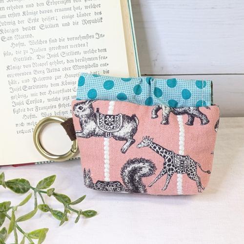 【Angela】さん / カラビナ付きミニバネ口ポーチ (メリーゴーランド・ピンク)