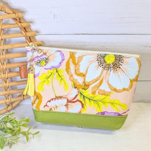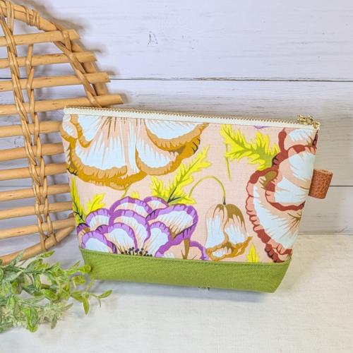 米国デザイナー『Kaffe Fassett』(ケイフ・ファセット)によるはっとするような美しいテキスタイルが主役の台形ポーチです。