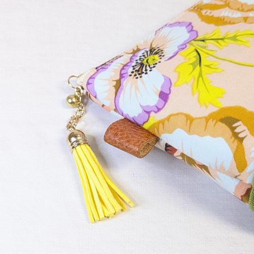 本革のタブやタッセルチャームなど、ワンランク上の仕様も素敵。全体にトーンを合わせ、大人っぽいポーチに仕立てられています。