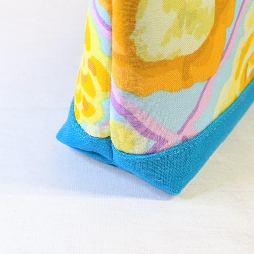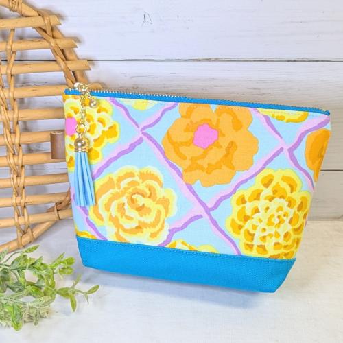 米国デザイナー『Kaffe Fassett』(ケイフ・ファセット)によるはっとするような美しいテキスタイルが主役の台形ポーチです。
