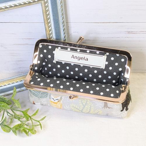 【Angela】さん / カードサイズミニがま口ポーチ (ねこと森)