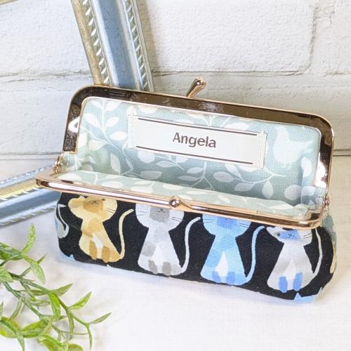【Angela】さん / カードサイズミニがま口ポーチ (ねこ/ブラック)