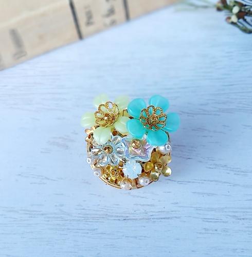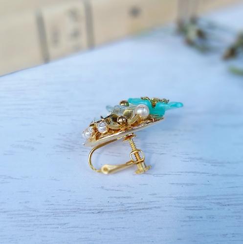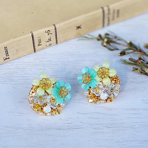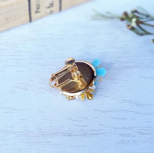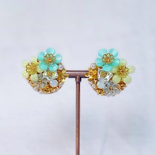 ドイツヴィンテージのスタッカブルフラワーパーツを主役にした、美しいブーケデザインのイヤリングです。